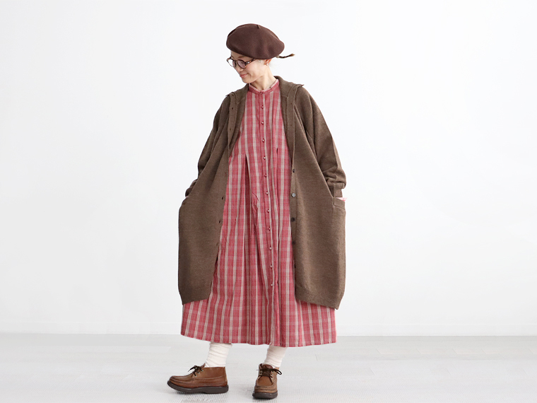 maison de soil (メゾンドソイル) チェック・バンドカラーシャツワンピース