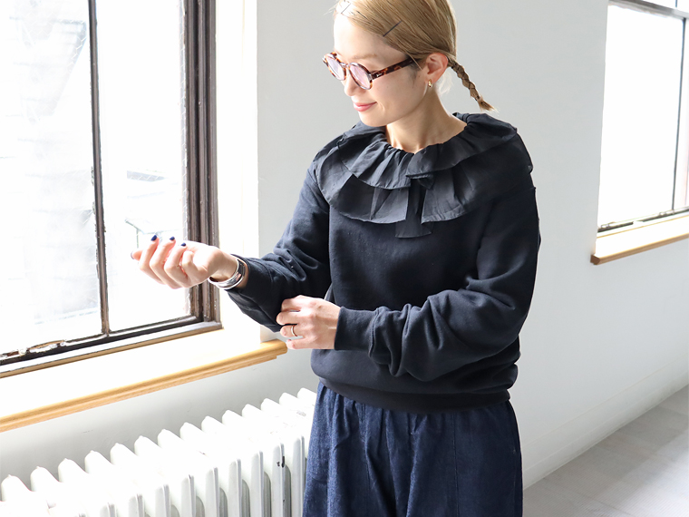 dahl'ia (ダリア) フリル襟・リメイクスウェット (全3色)