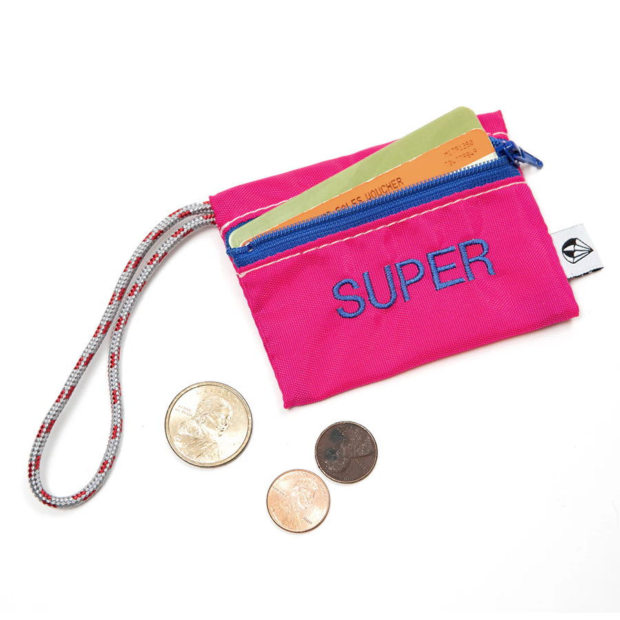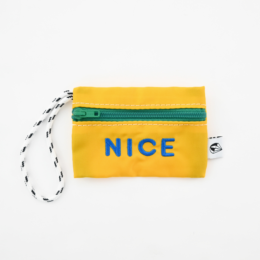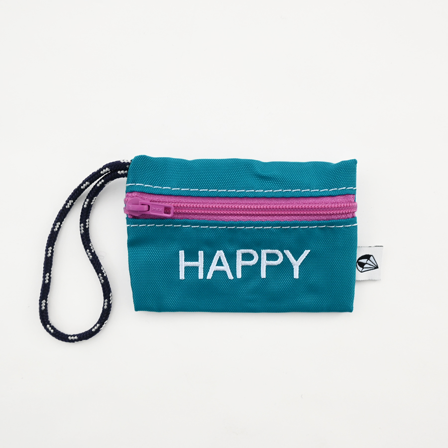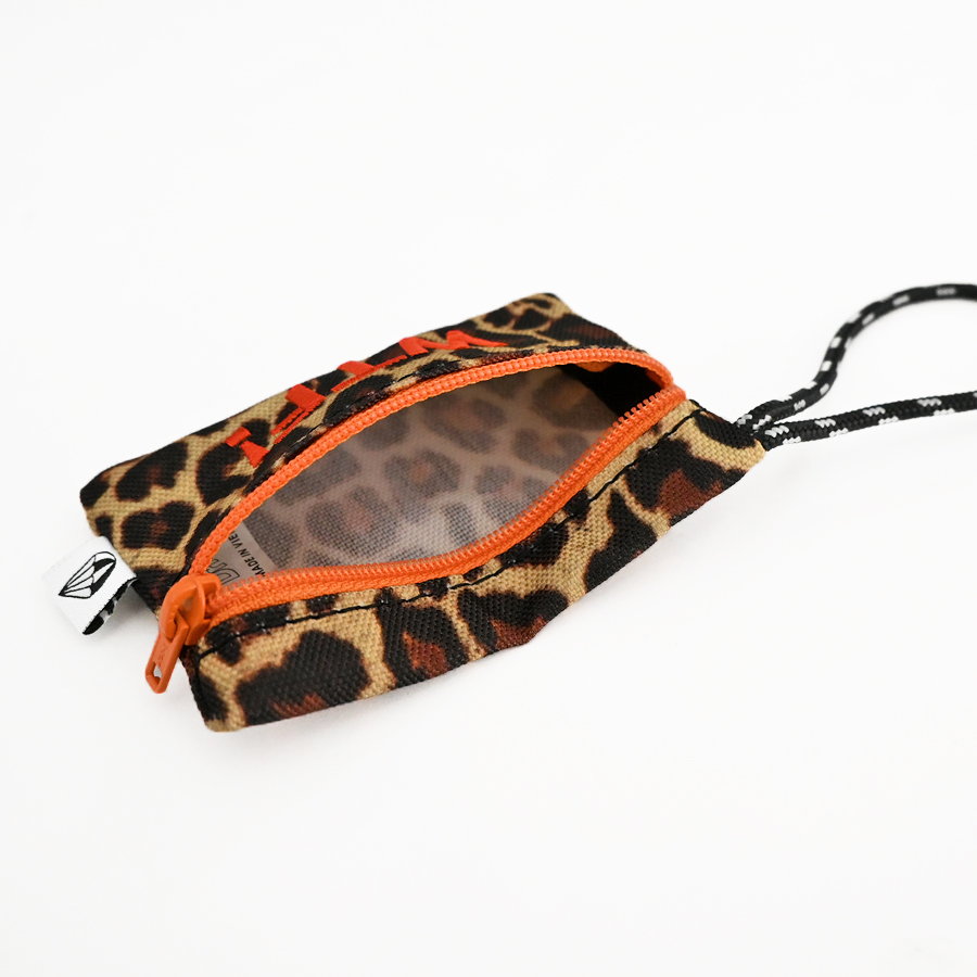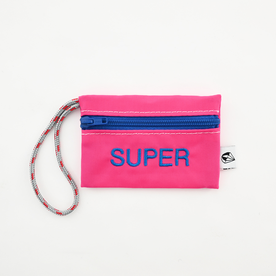 こちらは、バッグのハンドル等への取り付けが可能な長めのロープと可愛らしい刺繍が特徴的なチャーム型のミニポーチ。名刺やクレジットカード・ICカード等がピッタリと収まるサイズ感ですが、Bluetoothイヤホンや電子機器周りのアクセサリ等の収納にも最適なアイテムです。