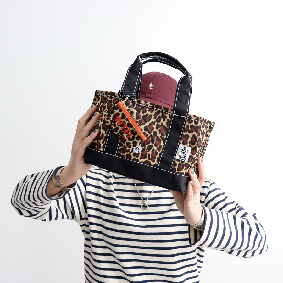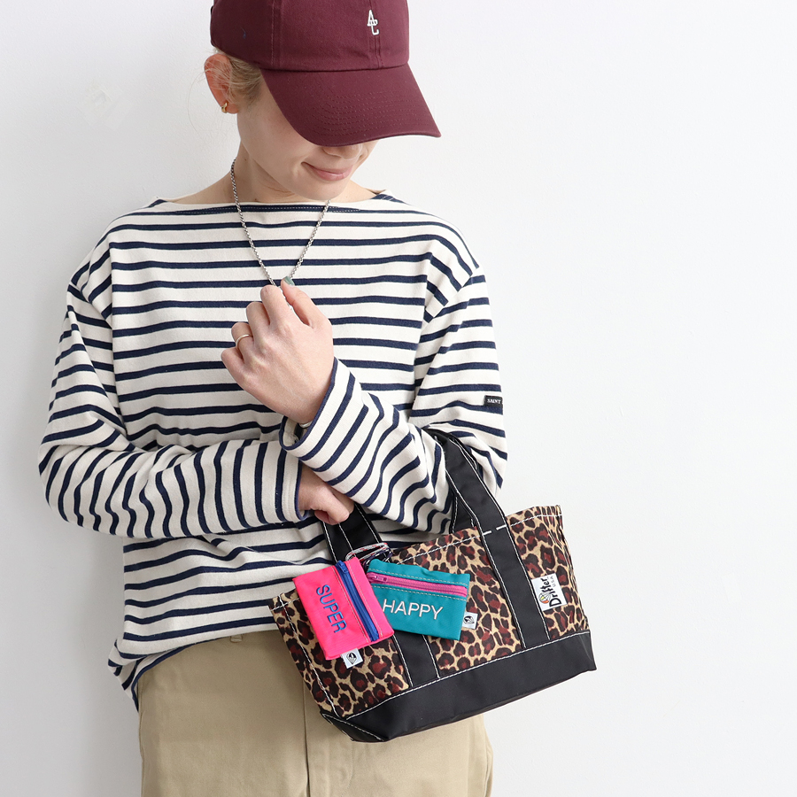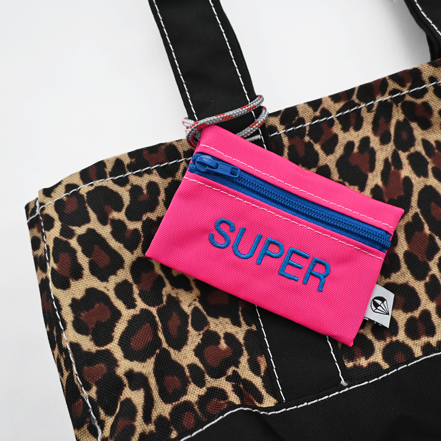 素材・・420デニールパッククロスナイロン(ピンク/SUPER、サフラン/NICE、ターコイズ/HAPPY)、 ポリエステル(レオパード/WTF!)