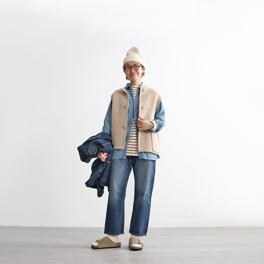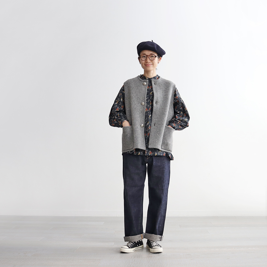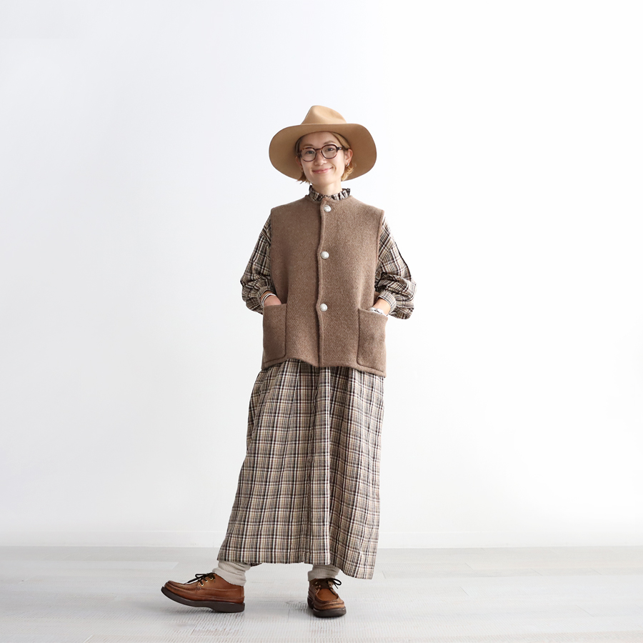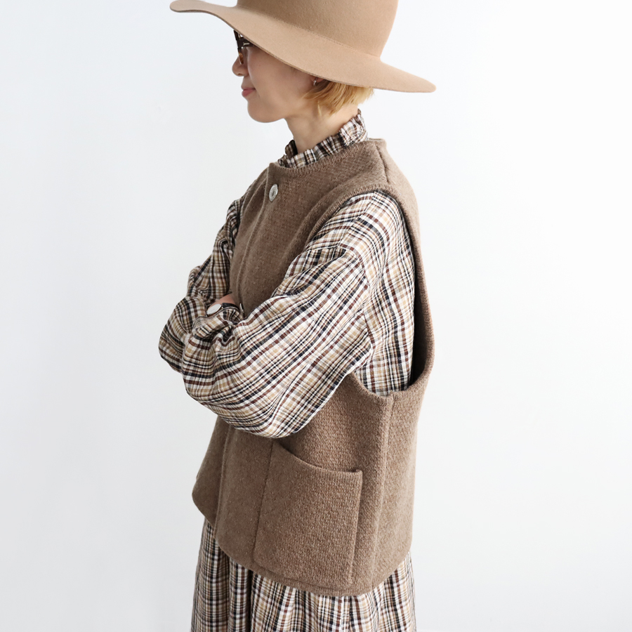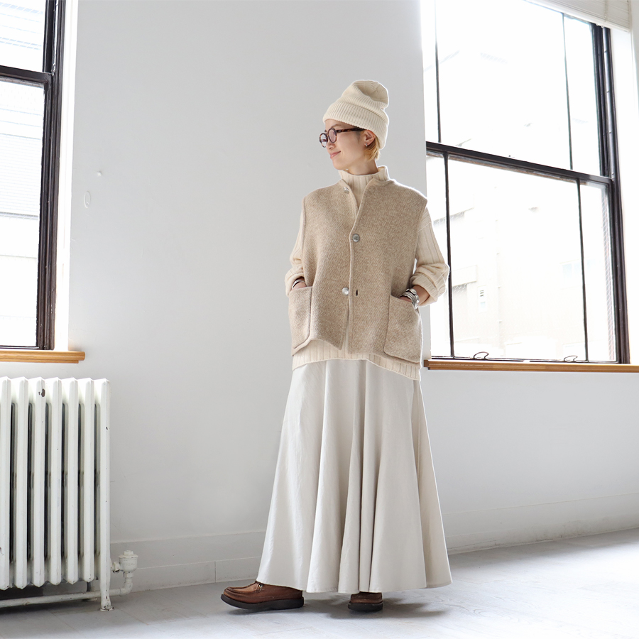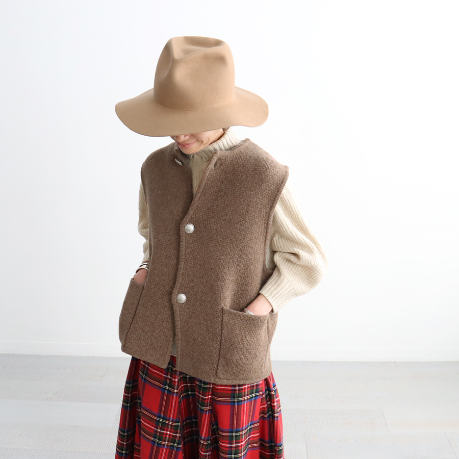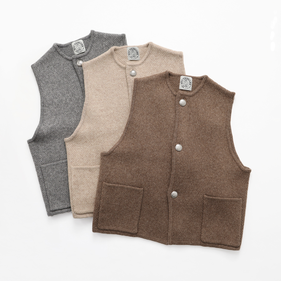 こちらは、サロ別注のニットベスト。昨年も大大大好評頂いたため、調子に乗らせてください、今年も作ってしまいました~。