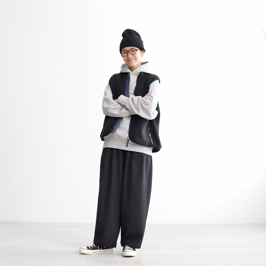全体的にゆったりめのシルエットでラフな着心地が魅力のベストです。