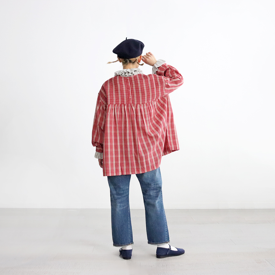 こちらは、チェック・ピンタックプルオーバーシャツ。