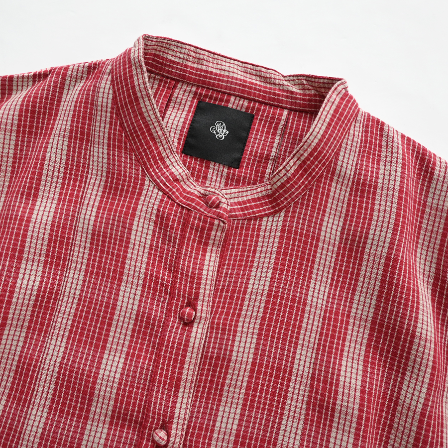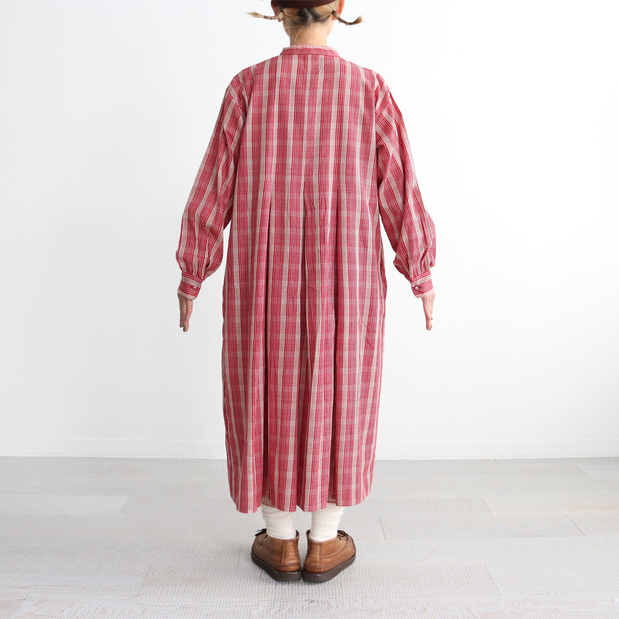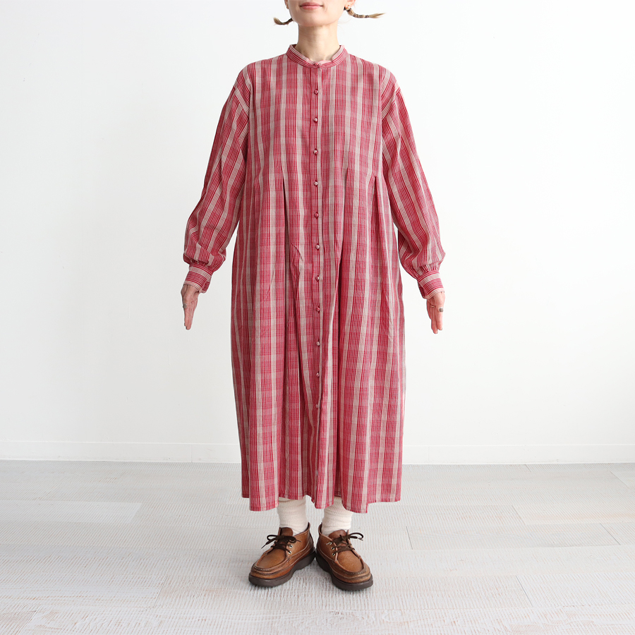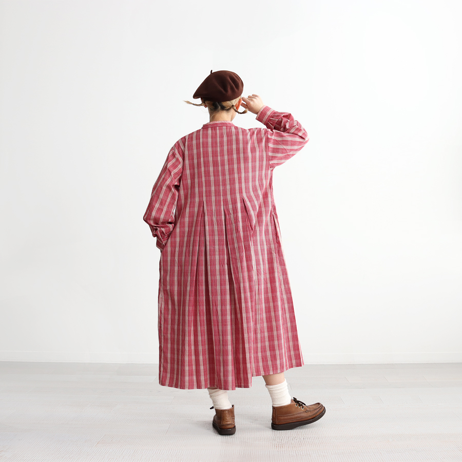 こちらは、チェック・バンドカラーシャツワンピース。