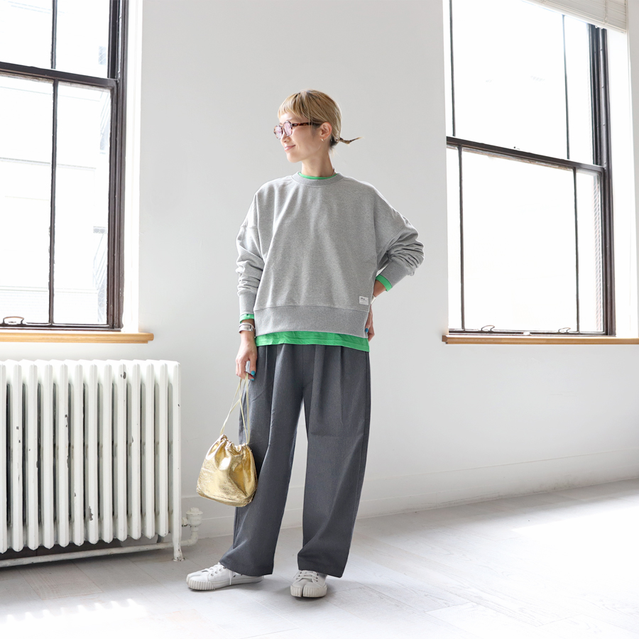 ゆとりを持たせた身幅に肩を落としたドロップショルダー。