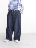 ウエストにはゴムと紐。股上が深くフロントは立体的なパターンに。ボリュームあるシルエットが、コンパクトなトップスなどにも合わせやすく、存在感のある主役ボトムになってくれます。また、締め付け感なく軽くてラフな穿き心地です。