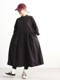 両サイドにはスラッシュポケット付き。ワンピースとしての着用はもちろん、前を開けて羽織りのようにも着ていただけるので、コーディネートの幅が広がる一枚です。