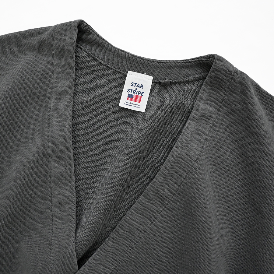 深めのVネックに程よくゆったりとしたサイズ感。両サイドには便利なポケットが付いています。