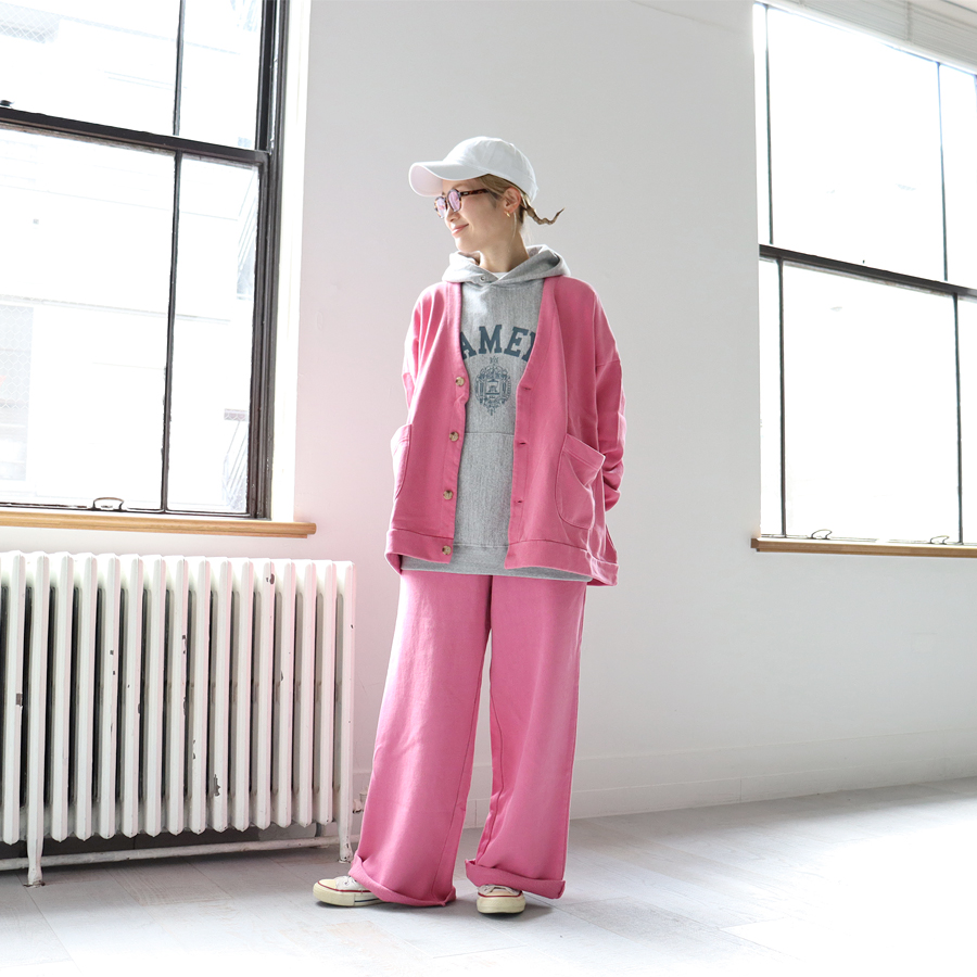 ■PINK PRACOCK(ピンク)身長158cm/お揃いのスウェットパンツとセットアップで着用