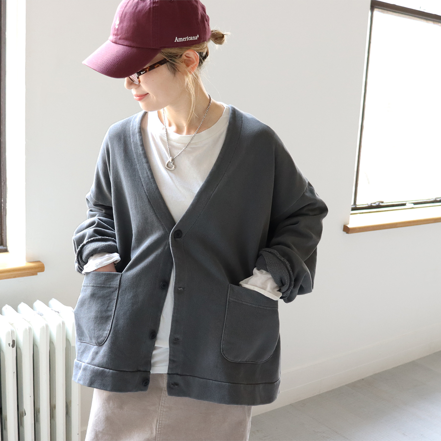 こちらは、Vネック・スウェットカーディガン。