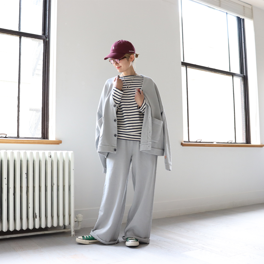 ■HARBOR MIST(ライトグレー)身長158cm/お揃いのスウェットパンツとセットアップで着用