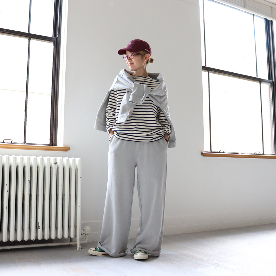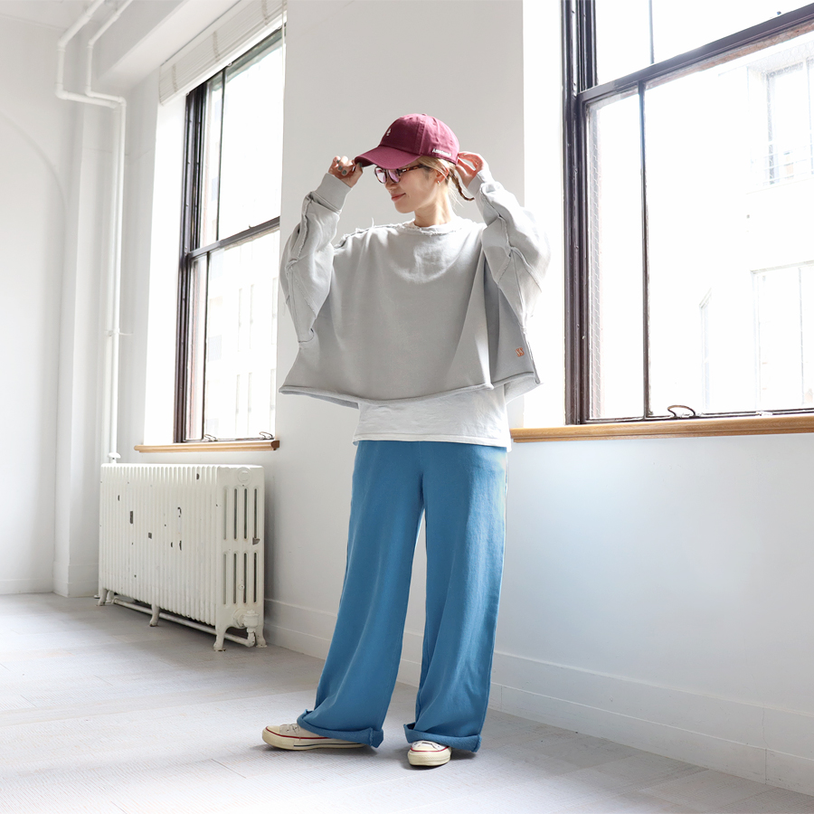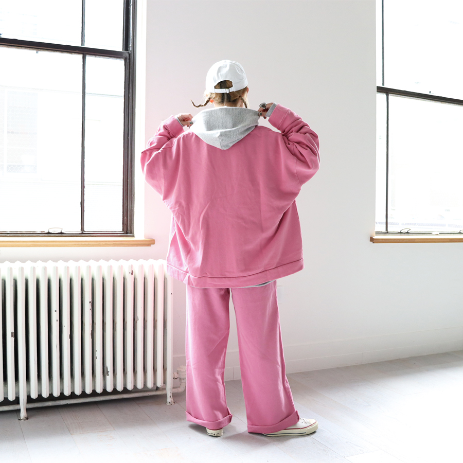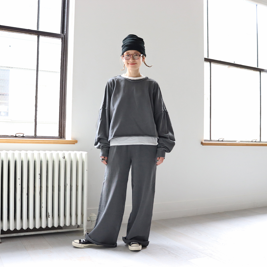 *お揃いのワイドプルオーバースウェットとセットアップで着用
