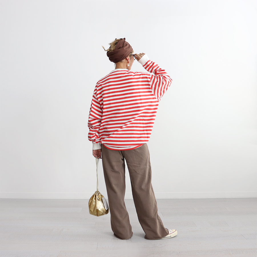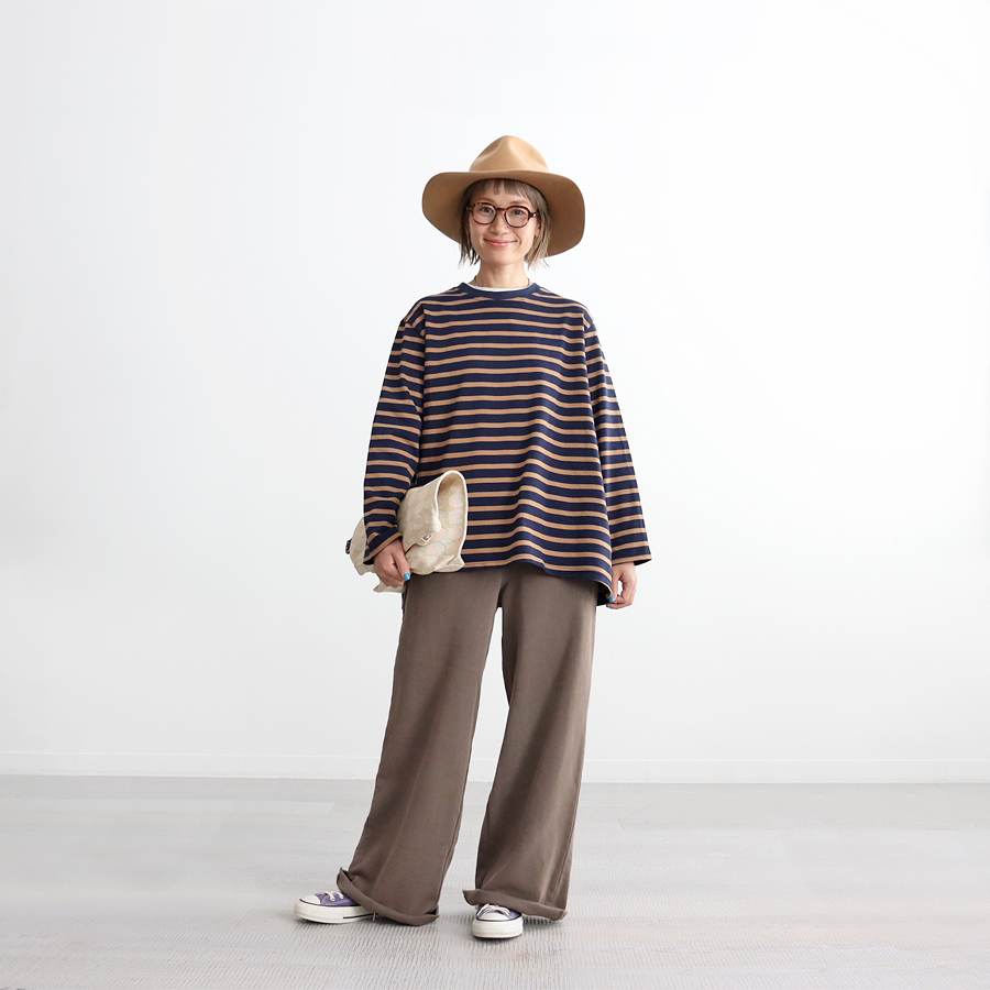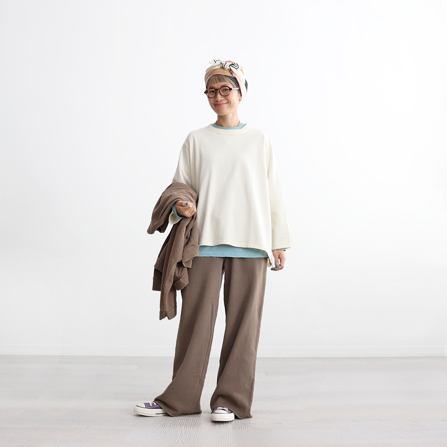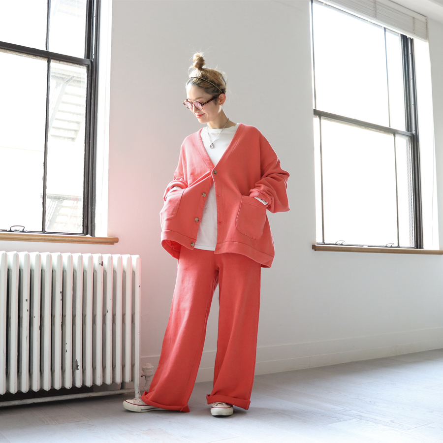 *お揃いのワイドプルオーバースウェットとセットアップで着用