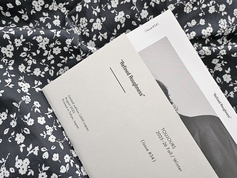 ブランド名「TOUJOURS /トゥジュー」はフランス語で「日常」。厳選した天然素材を使って素材の風合いや表情を最大限に引き出し、身に付けた時の心地良さ、安心感という目には見えないけれど大切な要素にも十分に気を配り、日々の暮らしを楽しむためのファッションとしての物作りを目指しています。いつの時代も変わらない普遍的なスタンダード、トラディショナルといったスタイルをベースに、モードとしての今日的解釈をきちんと自分なりのバランスで消化した上でブレンドしていき、最終的にそれを手にする人それぞれの個性によって、様々な意味を持つ「もの」として伝わる事をイメージしてラインナップを構成しています。