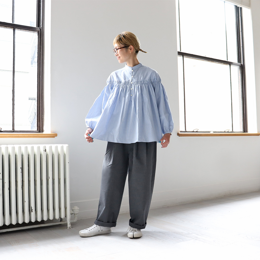 『枠にとらわれない自由な日常着』。日々の暮らしにスパイスを添える、ひと味違った日常着を提案しています。素材の持ち味を生かしたベーシックなアイテムに、今の気分を程よくプラスしたデザインは着る人の個性がさり気なく引き立ちます。枠にとらわれず、自由なテイストで着こなしを愉しんでほしい、そんな思いが込められたブランドです。