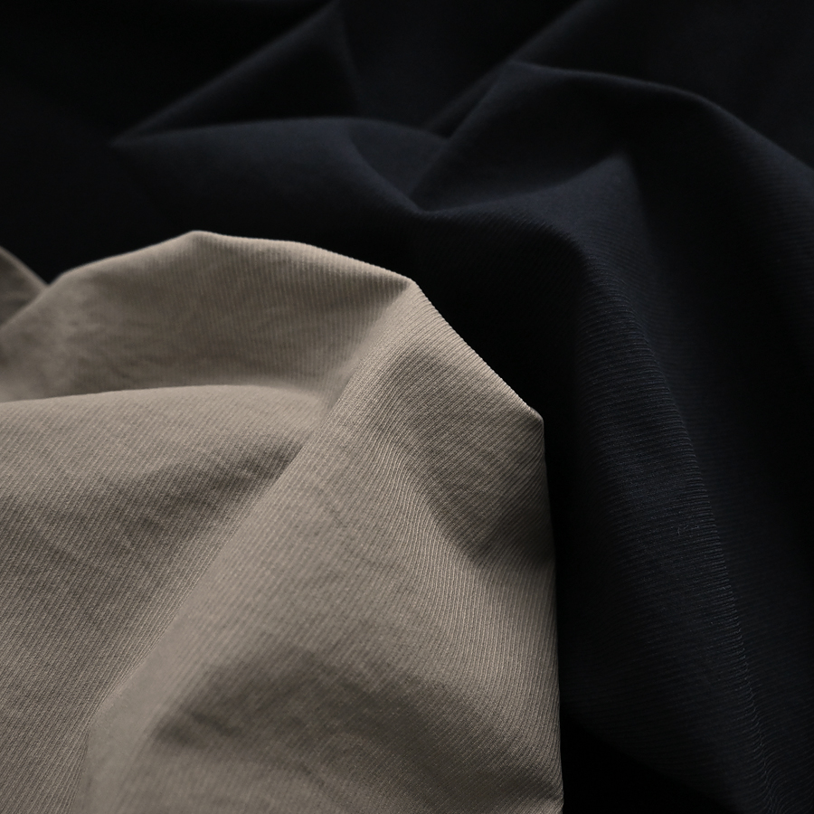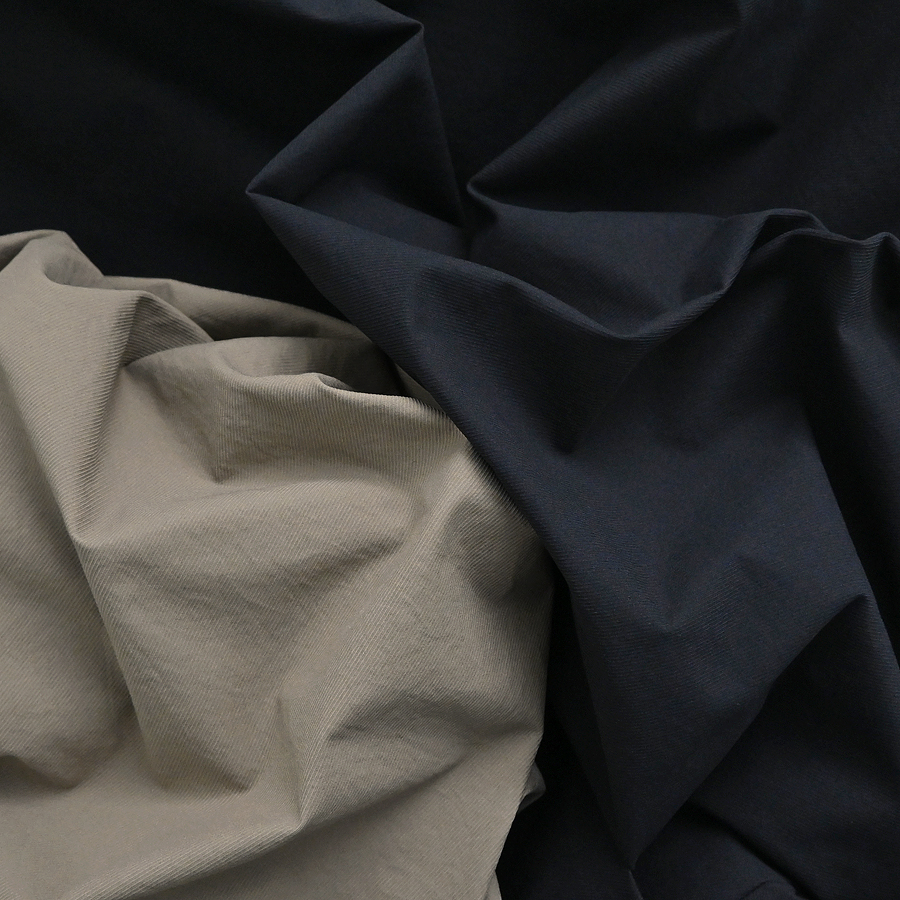 軽量でストレッチ性、耐久性に優れ、シワになりにくく撥水性も兼ね備えたハイスペック素材です。