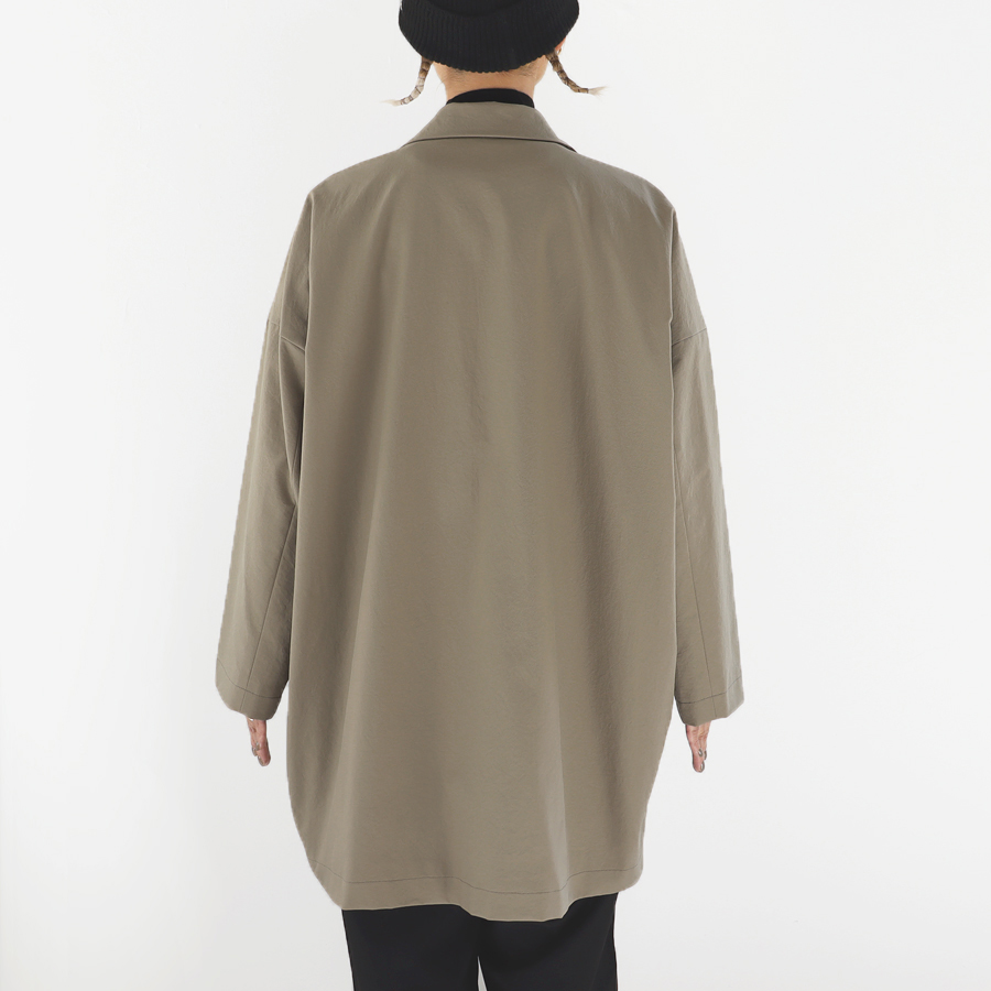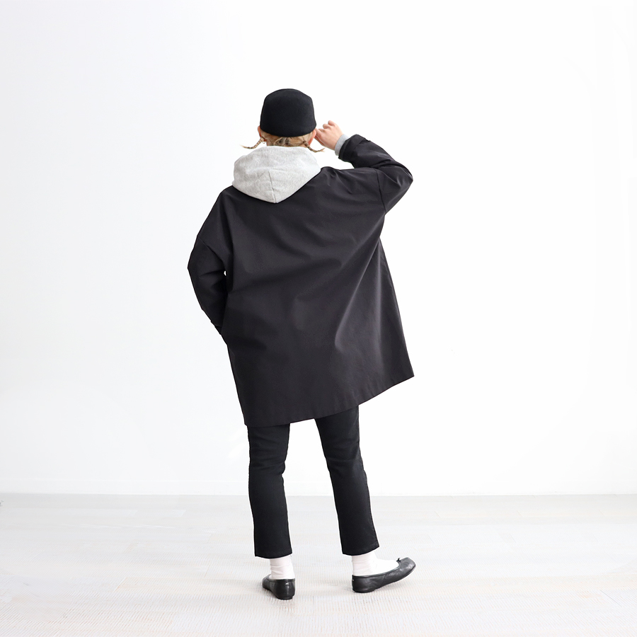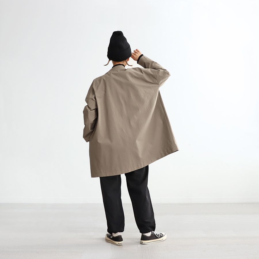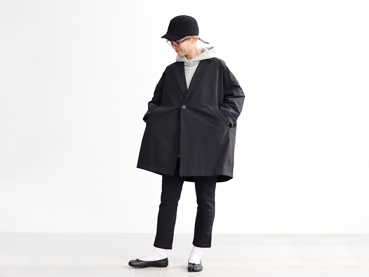 サラッとラフな雰囲気で羽織ったり、キレイめな着こなしも楽しめるハーフコートです。