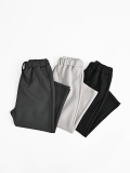 程よくゆとりを持たせたすっきりとした印象のパンツです。キレイ目に見えながらもスウェットパンツ感覚で穿けるパンツです。お揃いのVネックカーデとセットアップでのコーディネートもオススメです。