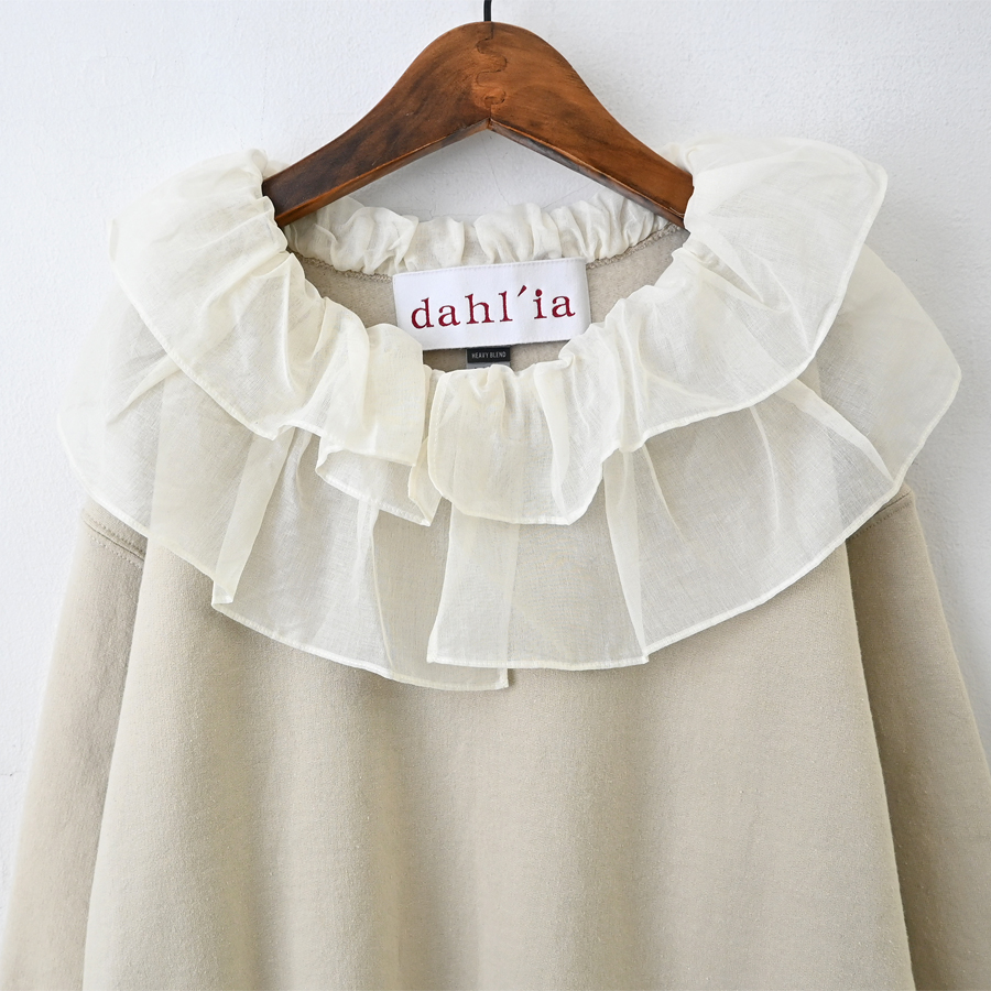 元スタイリストとその親友の女性2人で2000年春夏に手作りバッグとTシャツのリメイクからスタートしたブランド。 「dahl'ia」はメキシコ原産の花の名前。子供の頃のハートをくすぐられるようなキュートでありながら少し毒っけのある女の子を思い出すようなイメージとブランド名の響きがリンクして名付けました。常に「LIFE STYLE」をベースに、好きなヴィンテージ・エスニック・シンプル・ガーリーなど、シーズン毎にその時を切り取りながら服を作っています。