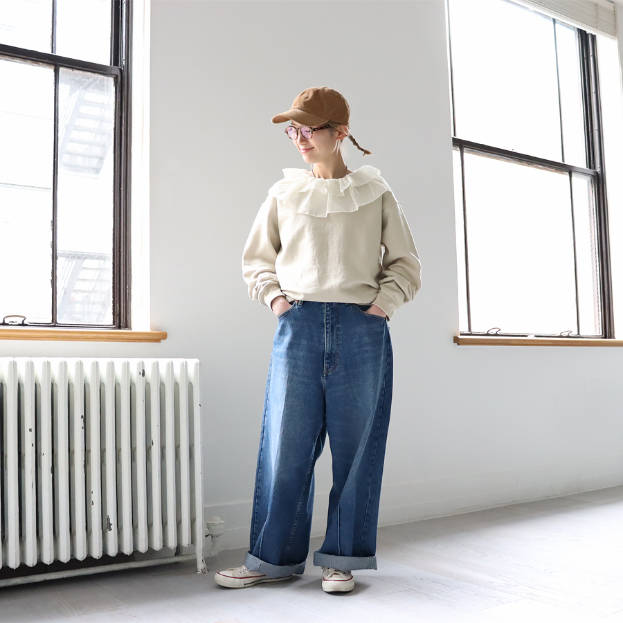 ※ボディのスウェットは大量生産されたざっくりとした作りです。完ぺきではない糸始末やステッチの2重縫製、織りキズ、色ムラなどがある場合もございます。不良品ではなく、このスウェットの特性になります。