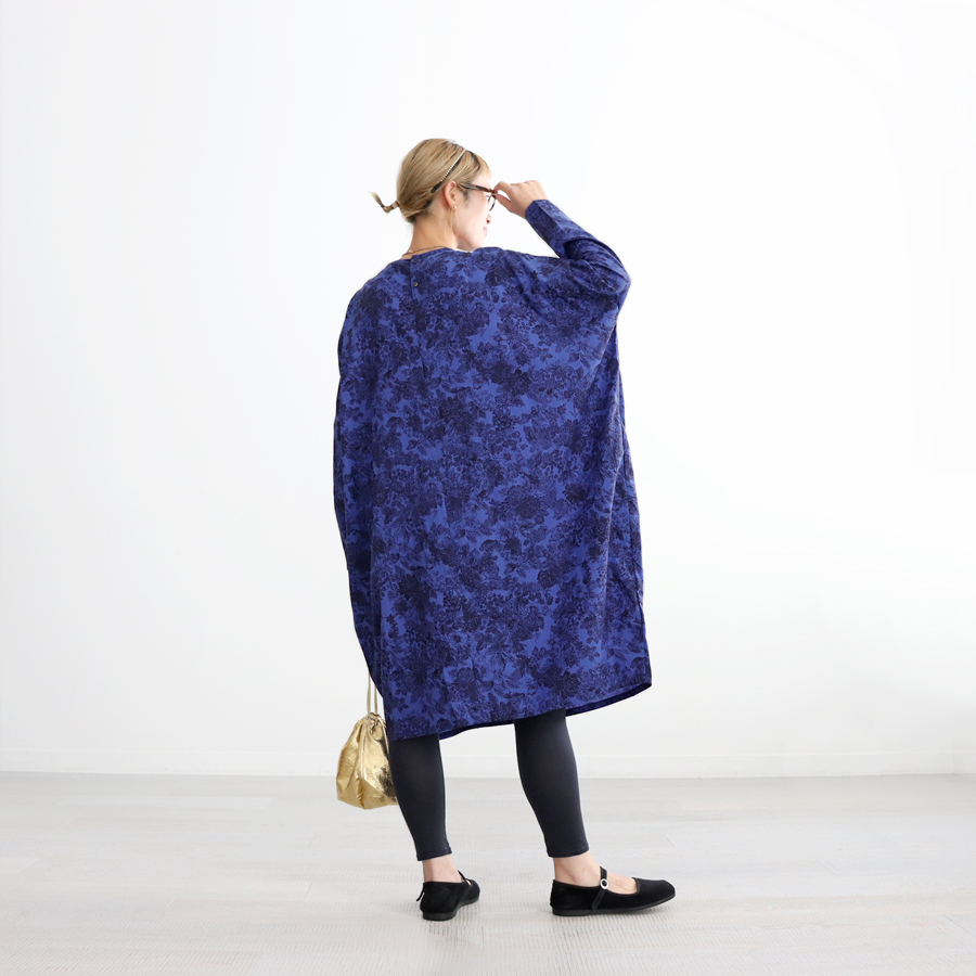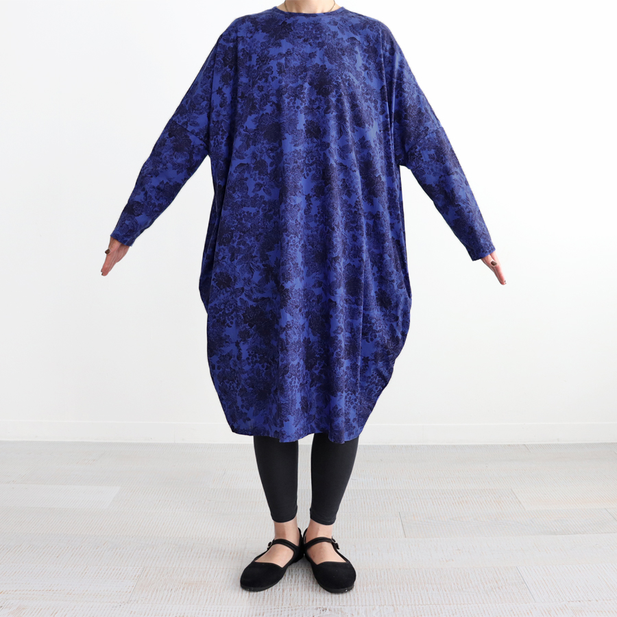 こちらは、プリントコクーンワイドワンピース。