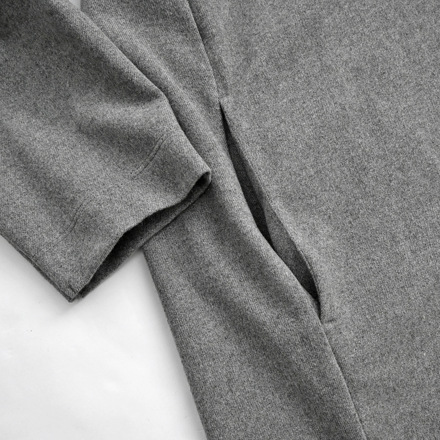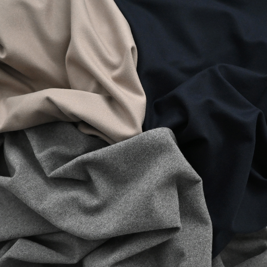 生地は滑らかな肌触りのカットポンチ素材を使用。 薄すぎず厚くもない適度な生地感。 微起毛の柔らかな素材は、上品な光沢感がありながらシワになりにくいのも嬉しいポイント。