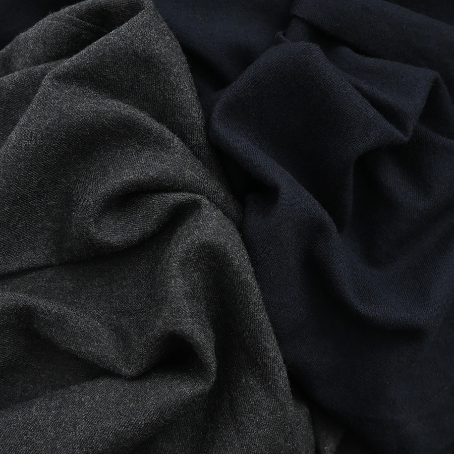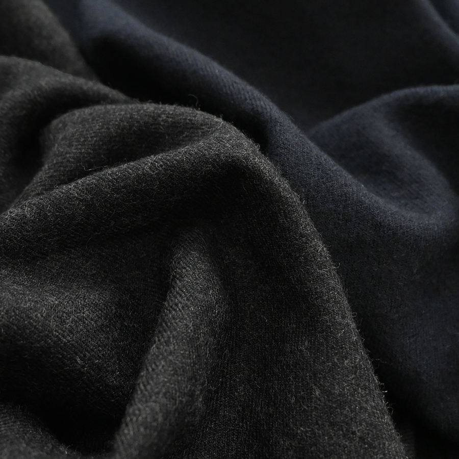 生地は洗い加工を施し、やわらかな肌触りに仕上げたウール100%生地を使用。