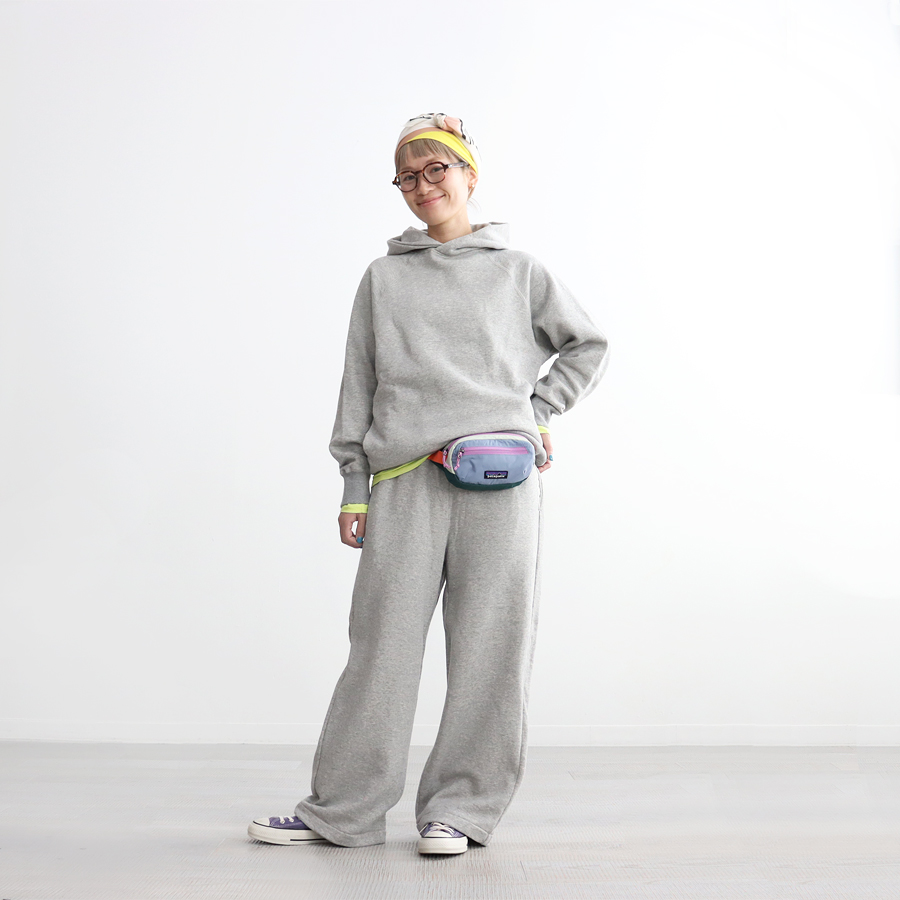 ■グレー杢(身長158cm) *お揃いのワイドパンツとセットアップで着用