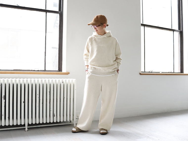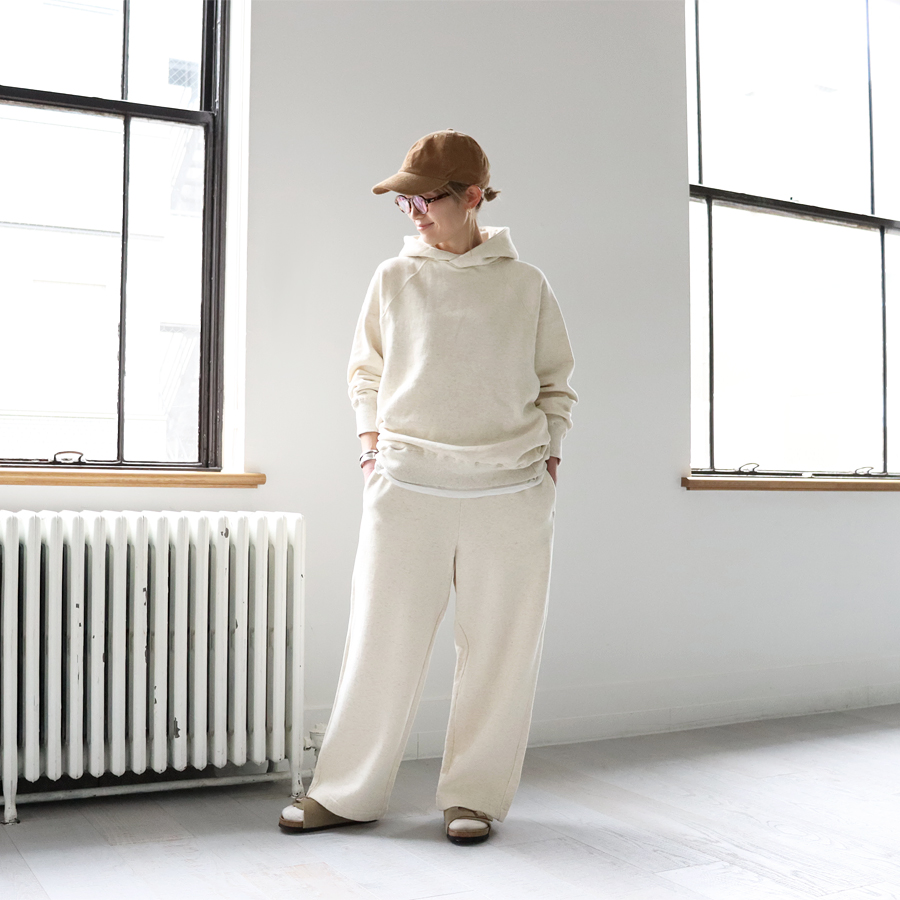 ■オートミール杢(身長158cm)*お揃いのワイドパンツとセットアップで着用