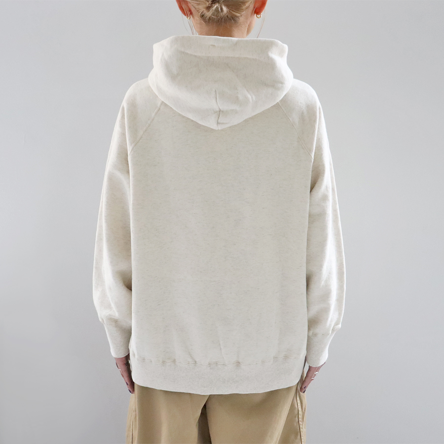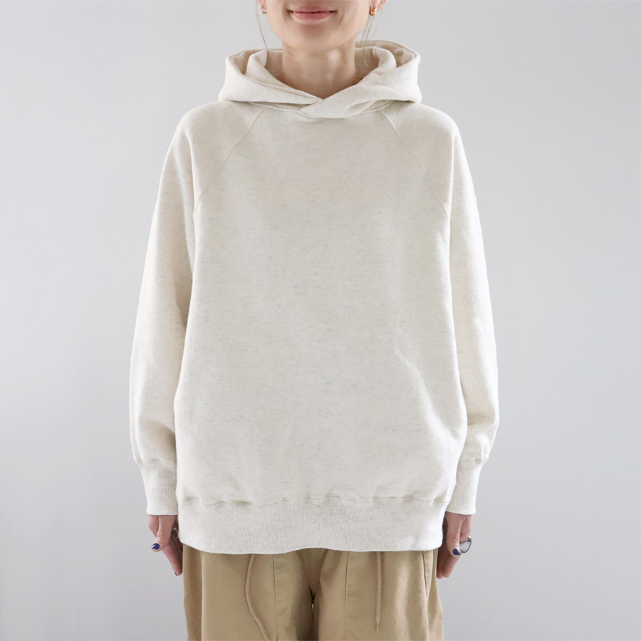 肩馴染みのよいラグランスリーブ仕様に、収まりがよくバランスのよいフード付き。 サイドにはシームポケット付きなのも嬉しいポイント。