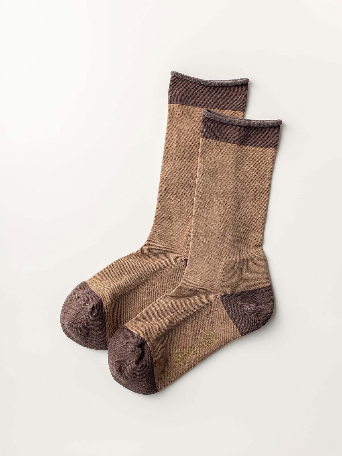 足底部分は薄めのパイル生地にすることで、弾力のある優しい履き心地とスッキリとした細身の印象に、履き口もゴムを使わずロール仕様にすることで、締めつけ感を出さずに生地全体で柔らかくフィットするように仕上げました。
