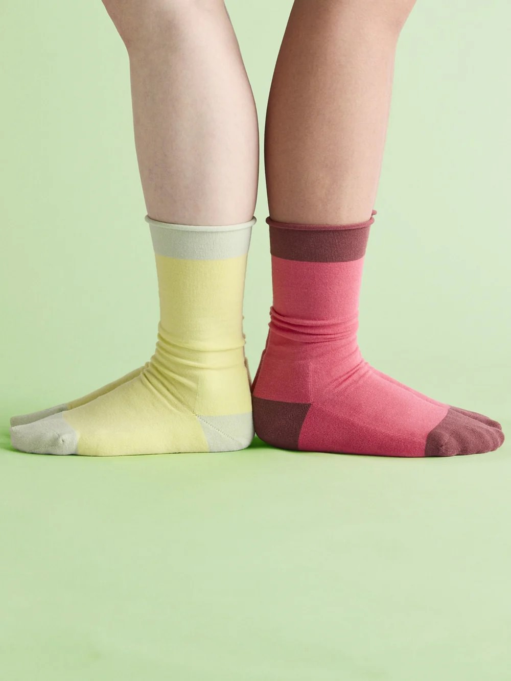履き口にゴムを使わない締めつけしらずのかわいい2トーン。