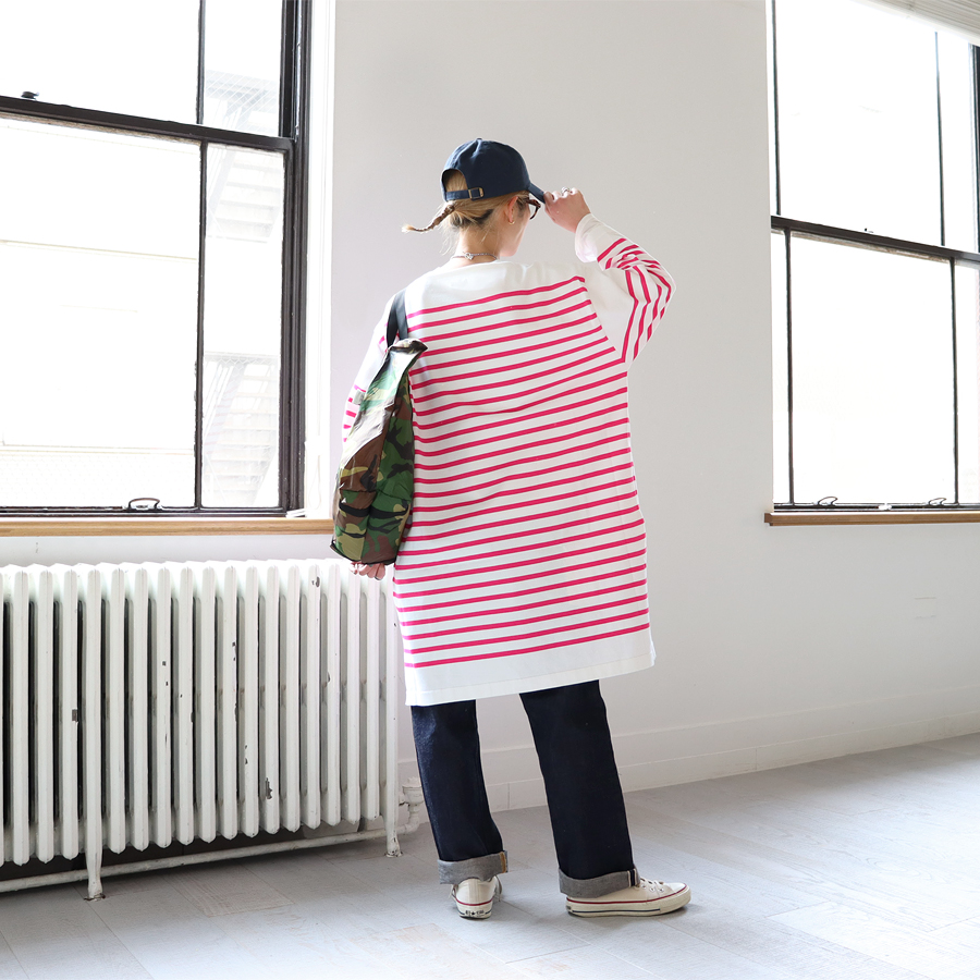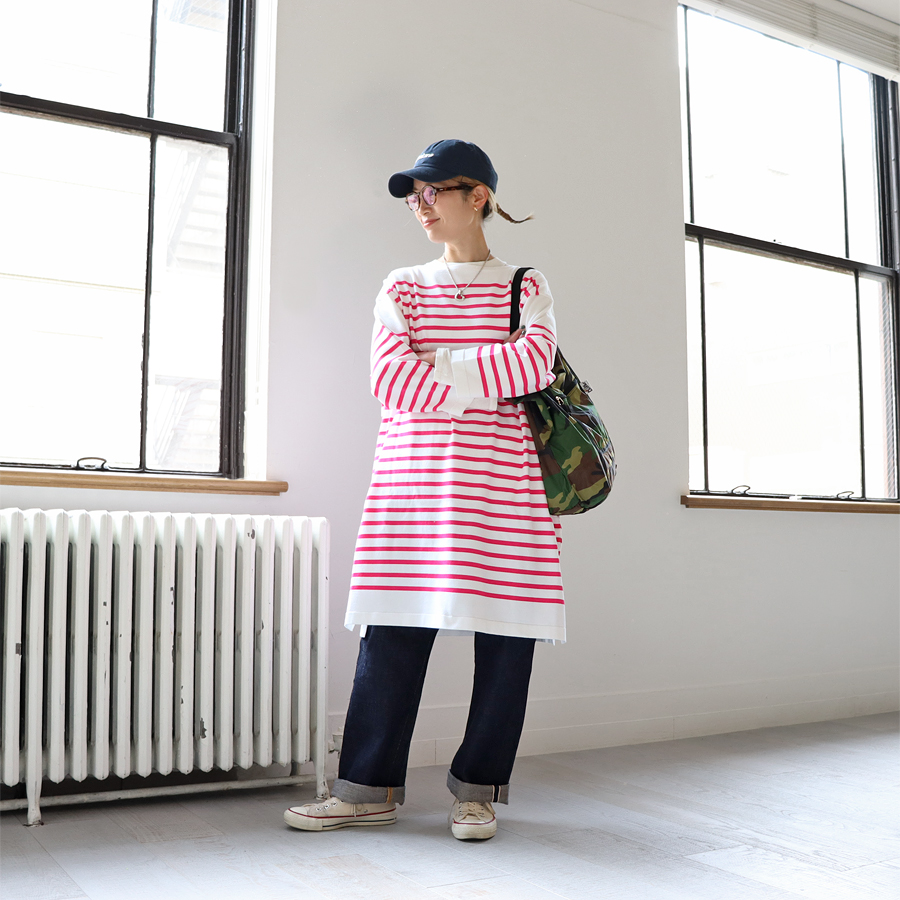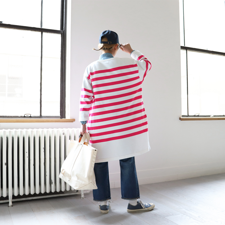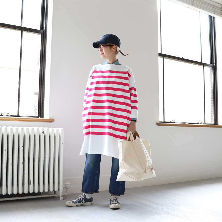 maillotのアイテムはシンプルで丈夫。長く着て、くたっとなった表情がとても良いデイリーウエアのブランドです。オリジナルファブリックを使用したシャツやボーダーカットソーは、しっくりと体になじむ着心地の良いものばかり。着たときにできるシャツのシワまでも、maillotのこだわりが詰まっています。